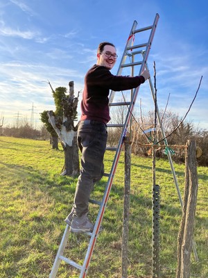 FÖJ-ler Julian Kehm beim Baumschnitt (Fotto: TRUZ)