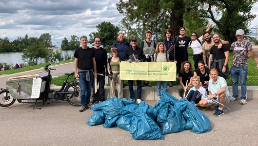 Am 13.09.2025 fand der jährliche RhineCleanUp day statt. Die Plastikverschmutzung der Natur richtet sowohl in den Meeren als auch direkt vor unserer Haustür bereits großen Schaden an und bedroht das Gleichgewicht unserer Gewässer. Deshalb haben wir vom Truz zusammen mit 12 Freiwilligen Müll am Rheinufer gesammelt. Die Initiative im Dreiländereck organisierte das Bündnis Plastikfreie Natur, inklusive eines Abschlusstreffens für Freiwillige und Organisator*innen um 16:30 Uhr. Das Treffen mit Apéro fand am Fuße der Dreiländerbrücke in Huningue in Frankreich statt.