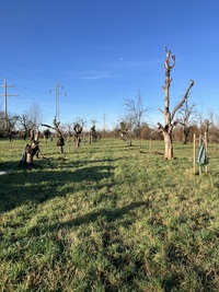 Am 09.12.2025 wurden vom TRUZ auf der größten und wichtigsten Ausgleichsfläche der Nordwestumfahrung bei Haltingen neue Obstbaum-Hochstämme gepflanzt.